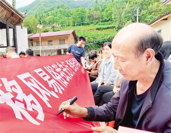 近日,漢濱區(qū)葉坪鎮(zhèn)在慶祝中國共產(chǎn)黨成立104周年活動現(xiàn)場,開展“移風易俗我先行 拒絕升學宴請風”簽名和宣講活動。 胡子新 攝