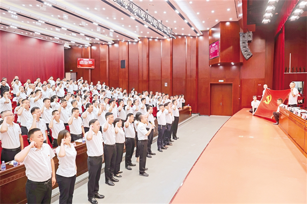 6月29日,漢濱區(qū)農(nóng)業(yè)農(nóng)村局全體黨員重溫入黨誓詞,慶祝中國共產(chǎn)黨成立104周年。周濬 攝