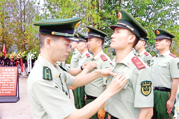 日前,武警安康支隊組織官兵赴平利縣老縣鎮(zhèn)蔣家坪村和牛蹄嶺戰(zhàn)役遺址公園開展形式多樣的主題黨日活動,引導廣大官兵在追尋歷史根脈、接受思想洗禮中堅定“聽黨話、跟黨走”的政治信念。趙坤 陳翔 攝