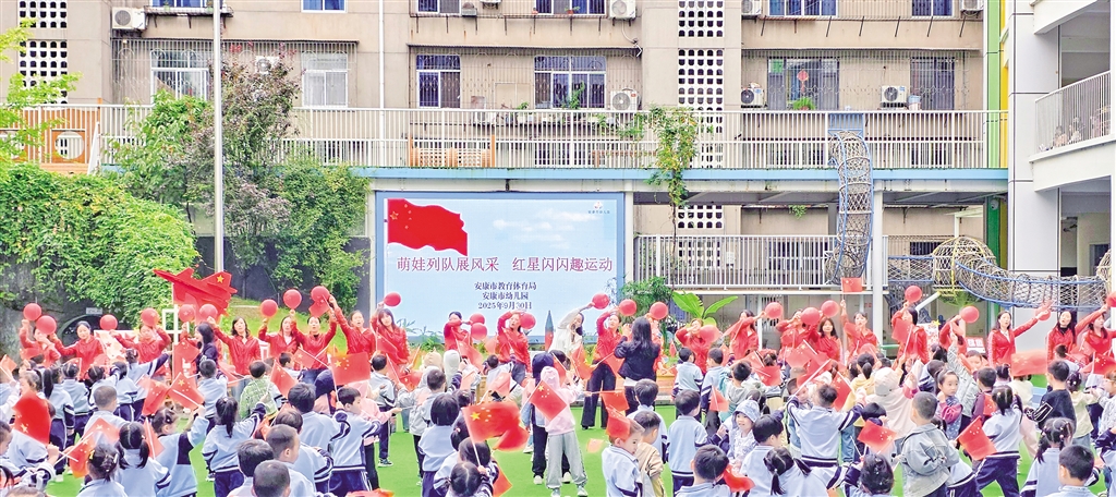 9月30日,安康市幼兒園舉辦“萌娃列隊(duì)展風(fēng)采 紅星閃閃趣運(yùn)動”國慶主題活動。 李生珍 攝wxP安康新聞網(wǎng)