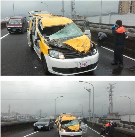 據(jù)臺灣聯(lián)合新聞網(wǎng)2月4日報道,臺北市4日上午傳出復(fù)興航空民航機(jī)墜落河面的意外,一輛行駛于環(huán)東快速道路上的出租車,意外受到機(jī)翼波及,車上包括一名女乘客被送往臺北忠孝醫(yī)院救治。圖為飛機(jī)墜落時砸到了停在橋上的的士汽車。ep2安康新聞網(wǎng) ep2安康新聞網(wǎng)