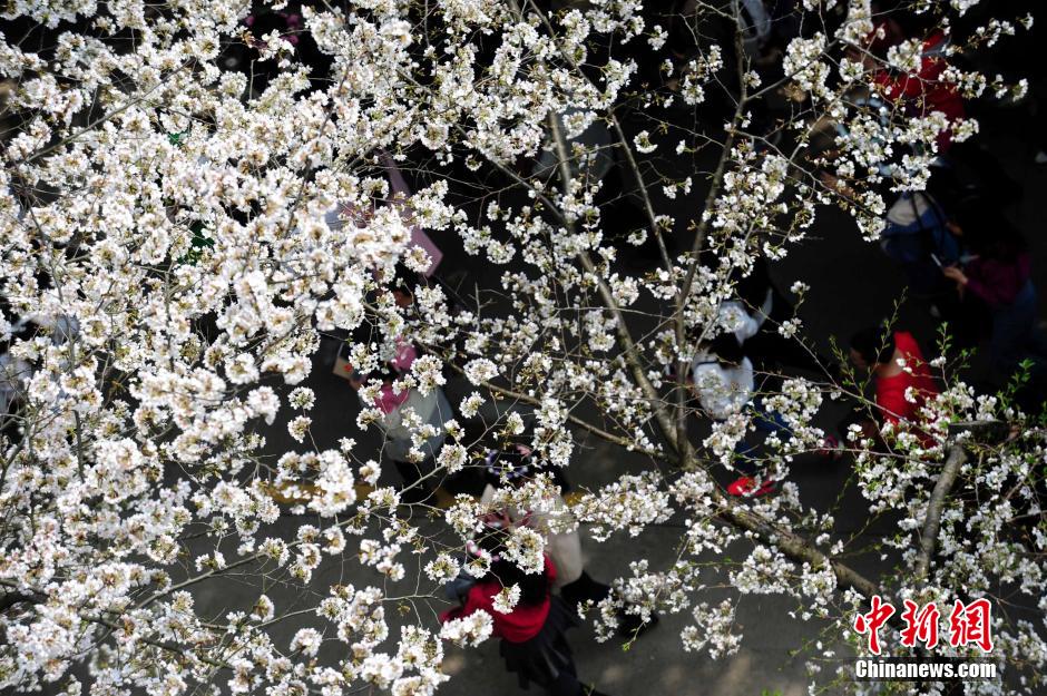 武大櫻花盡開放 游客擠爆校園