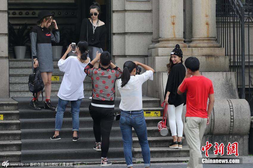 網(wǎng)店模特一天街拍200套 為省時當(dāng)街換裝