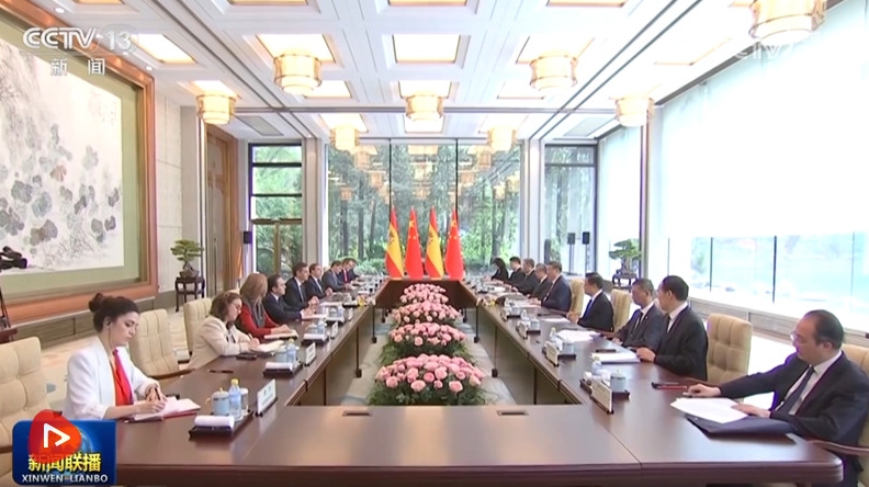 桑切斯表示,西班牙和中國建立全面戰(zhàn)略伙伴關(guān)系20年來,始終相互尊重、友好合作,兩國關(guān)系不斷深化發(fā)展。在習(xí)近平主席領(lǐng)導(dǎo)下,中國取得卓越發(fā)展成就,為世界繁榮穩(wěn)定作出重大貢獻(xiàn)。西班牙重視對華關(guān)系,堅(jiān)定不移奉行一個(gè)中國政策,愿同中方保持高層交往,深化貿(mào)易、投資、科技創(chuàng)新、綠色能源等領(lǐng)域互利合作,加強(qiáng)教育、文化、旅游領(lǐng)域交流,推動(dòng)兩國關(guān)系邁上新臺階。中國是歐盟重要合作伙伴,西班牙始終支持歐中關(guān)系穩(wěn)定發(fā)展。歐方堅(jiān)持開放自由貿(mào)易,致力于維護(hù)多邊主義,反對單邊加征關(guān)稅。貿(mào)易戰(zhàn)不會(huì)有贏家。面對復(fù)雜嚴(yán)峻的國際形勢,西班牙和歐盟愿與中方加強(qiáng)溝通協(xié)作,維護(hù)國際貿(mào)易秩序,攜手應(yīng)對氣候變化、貧困等挑戰(zhàn),維護(hù)國際社會(huì)共同利益。