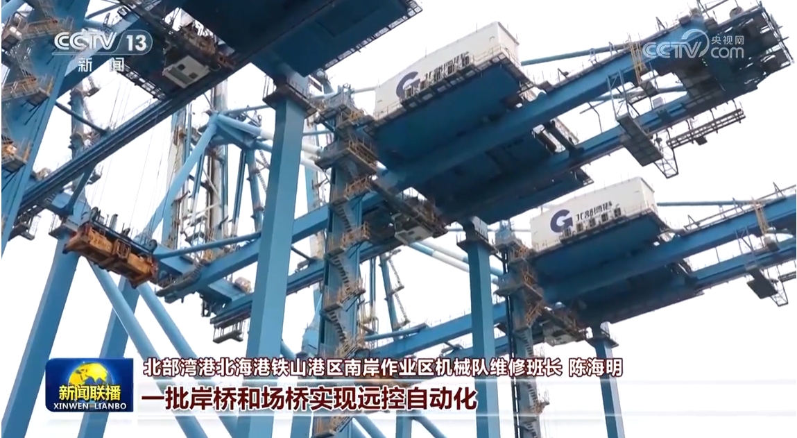 在廣西北海,鐵山港岸橋林立,貨輪有序裝卸,貨車往來穿梭,來自世界各地的貨物在這里高效暢通中轉(zhuǎn)。