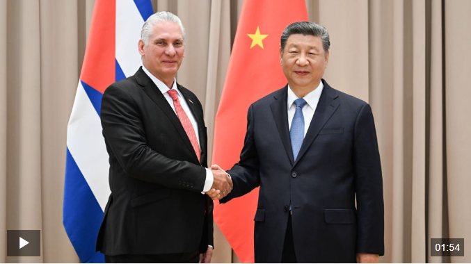 習(xí)近平指出,近年來,我同主席同志多次會晤,共同引領(lǐng)中古關(guān)系進(jìn)入政治互信更深厚、戰(zhàn)略協(xié)作更緊密、民意基礎(chǔ)更牢固的新階段。今年是中古建交65周年,中方愿同古方進(jìn)一步鞏固鐵桿情誼,構(gòu)建更加緊密的中古命運(yùn)共同體,樹立社會主義國家團(tuán)結(jié)合作、發(fā)展中國家真誠互助的典范。雙方要促進(jìn)各層級交往、各領(lǐng)域合作進(jìn)一步走深走實,讓高水平政治互信始終成為中古兩黨兩國關(guān)系的鮮明標(biāo)識。中方堅定支持古巴捍衛(wèi)國家主權(quán)、反對外來干涉和封鎖,支持古巴經(jīng)濟(jì)社會發(fā)展。作為全球南方重要成員,雙方要在金磚、中拉論壇等框架內(nèi)加強(qiáng)協(xié)調(diào)和配合,反對強(qiáng)權(quán)政治和單邊霸凌,維護(hù)國際公平正義。