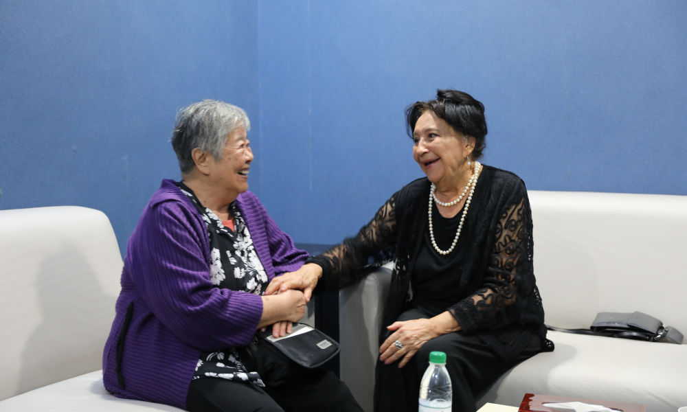 2024年10月9日,“人民音樂(lè)家”冼星海之女冼妮娜(左)和哈薩克斯坦音樂(lè)家拜卡達(dá)莫夫之女拜卡達(dá)莫娃闊別5年后在武漢約見。新華社發(fā)(劉天一攝)