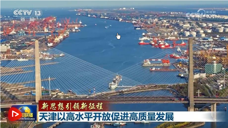 央視網(wǎng)消息(新聞聯(lián)播):習(xí)近平總書記指出,我們要全面提高對外開放水平,建設(shè)更高水平開放型經(jīng)濟(jì)新體制,形成國際合作和競爭新優(yōu)勢。天津充分發(fā)揮自身區(qū)位優(yōu)勢,穩(wěn)步擴(kuò)大制度型開放,努力打造開放層次更高、輻射作用更強(qiáng)的改革開放新高地,以高水平開放促進(jìn)高質(zhì)量發(fā)展。