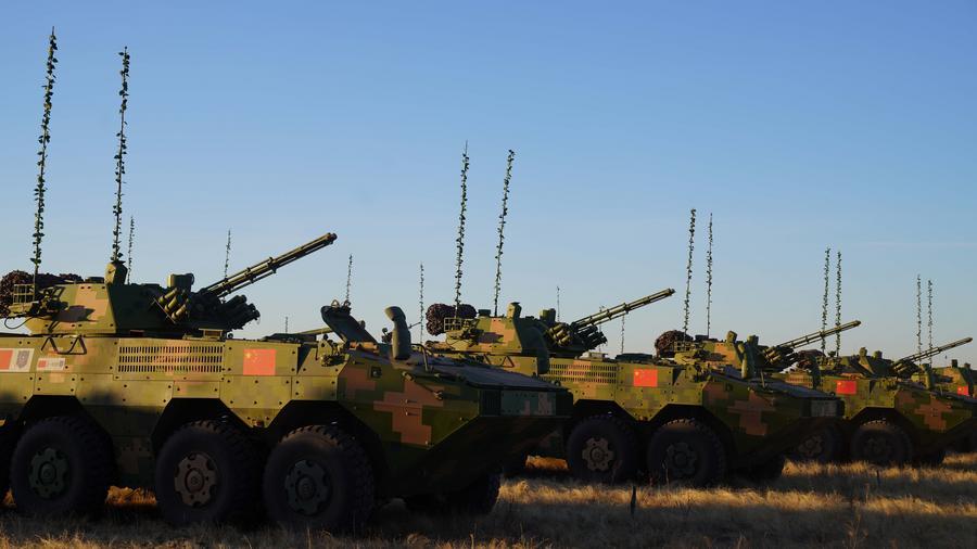 2021年9月20日,在俄羅斯奧倫堡州東古茲靶場(chǎng)舉行的“和平使命-2021”上海合作組織聯(lián)合反恐軍事演習(xí)開(kāi)幕式上,中方參演部隊(duì)接受檢閱。新華社記者梅世雄攝