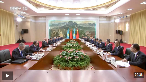 會(huì)見期間,兩國元首見證宣布兩國發(fā)展戰(zhàn)略對接、能源、科技、住建、教育、體育、野生動(dòng)物保護(hù)等20余份雙邊合作文件以及為在哈新設(shè)立兩處魯班工坊揭牌。