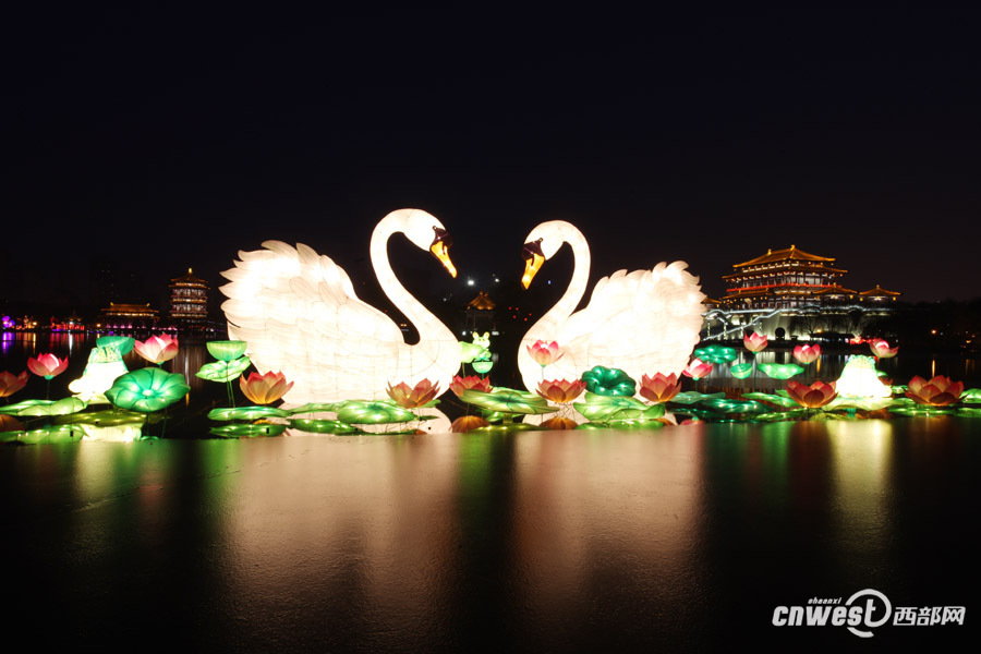 西部網(wǎng)訊(記者 魏永賢 敬澤昊)2月4日晚,西北地區(qū)最大的水陸燈會(huì)在大唐芙蓉園舉行點(diǎn)燈儀式,上百盞形態(tài)各異的花燈和寬闊的水面,以及唐風(fēng)園林景觀相映成輝。