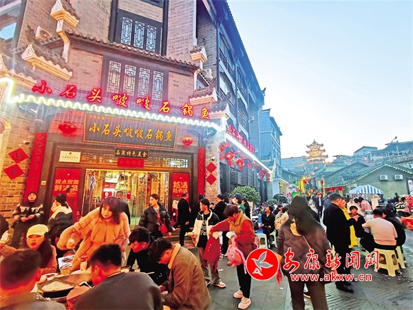 走進(jìn)石泉縣,琳瑯滿目的美味小吃、地方特產(chǎn)、文創(chuàng)手作,豐富多彩的春節(jié)活動讓人流連忘返,助推文旅商貿(mào)實現(xiàn)深度融合發(fā)展。年味濃、人氣足、消費旺,共同繪就了春節(jié)消費市場欣欣向榮的圖景。春節(jié)假日期間,石泉縣文化旅游市場火爆,全縣累計接待游客41.51萬人次,實現(xiàn)旅游綜合收入2.74億元,按可比口徑較2023年分別增長54.88%、103.78%;全縣社會消費品零售總額同比增長10.66%,春節(jié)市場消費活力十足。