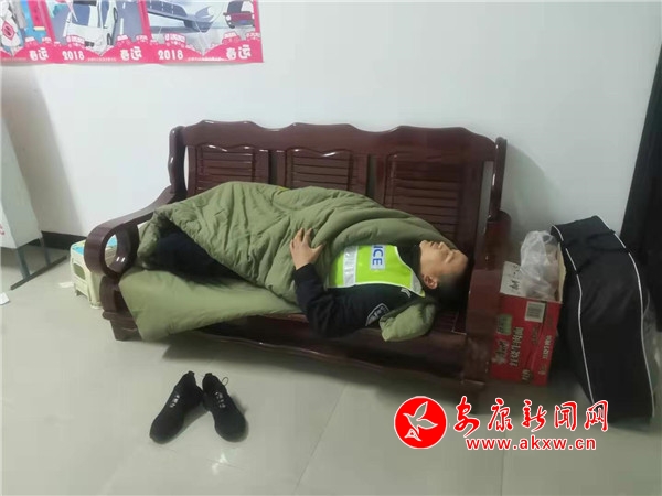 在神河中隊(duì),全體民警迅速歸隊(duì)守護(hù)一方平安。原定于正月初八結(jié)婚的崔鵬程做出推遲婚期的決定,妻子屈曼不僅支持,也在第一時(shí)間趕到了神河鎮(zhèn)中心衛(wèi)生院的工作崗位上。小崔白天負(fù)責(zé)交通要道口湖北等外來(lái)車(chē)輛的排查篩查,晚上還要加班整理各類(lèi)報(bào)表,同時(shí)兼顧日常的交管業(yè)務(wù),連續(xù)多日的嚴(yán)寒導(dǎo)致其患上重感冒,為了不影響工作,屈曼在中隊(duì)辦公室為小崔掛上了點(diǎn)滴。在神河高速路口設(shè)置的檢疫站上,中隊(duì)民警路紀(jì)煒全天候值守,淋著小雨患上風(fēng)寒感冒出現(xiàn)發(fā)燒癥狀后,在同事的多次勸說(shuō)下才去縣醫(yī)院檢查治療,病情稍有好轉(zhuǎn),立即向領(lǐng)導(dǎo)申請(qǐng)返回崗位。