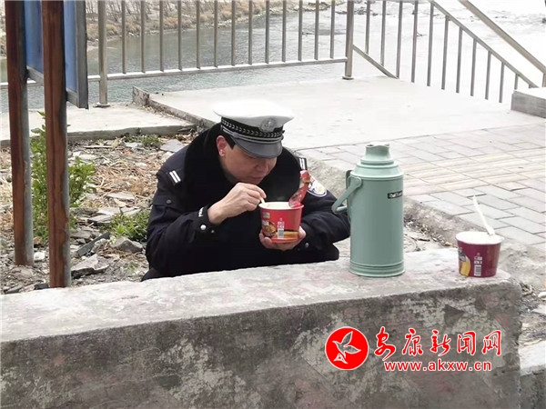 和她一樣的女漢子還有活躍在縣醫(yī)院十字路口處的王金、向婷,站在崗位上一刻她們就要圓滿完成這一刻的任務(wù)。疏導(dǎo)行人和車(chē)輛,確?h醫(yī)院應(yīng)急通道的暢通,在她們心里那就是天職,連吃飯也一直在附近移動(dòng)警務(wù)車(chē)?yán)镙喠骰鹚俳鉀Q。