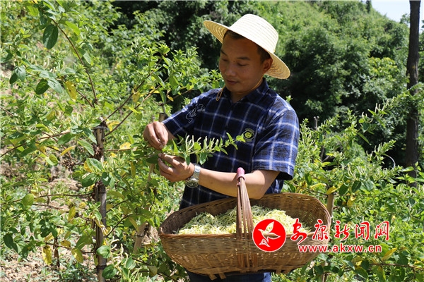 “在各級政府和農(nóng)林部門的大力支持下,通過公司+合作社(基地)+種植戶(貧困戶)的模式,利用三變改革、土地流轉(zhuǎn)、帶地入社、反租倒包等多渠道經(jīng)營,由我們公司提供種苗、技術(shù)和回收,群眾負(fù)責(zé)種植,管理和養(yǎng)護(hù)。合理的經(jīng)營與科學(xué)保姆式的技術(shù)培訓(xùn)服務(wù),我們已經(jīng)實現(xiàn)了最高畝收入20000元以上的經(jīng)濟(jì)效益。”談起金銀花發(fā)展前景,樊仁恭信心滿滿。