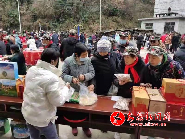 本網(wǎng)訊(通訊員 李響)12月的旬陽(yáng)市桐木鎮(zhèn)涌泉村,陣陣寒風(fēng)帶來(lái)入冬的寒意,小河潺潺的流水伴隨裊裊炊煙,盡顯一片祥和幽靜的山村景象。13日,小山村突然熱鬧了起來(lái),涌泉村群眾活動(dòng)廣場(chǎng)上人頭攢動(dòng),熱鬧非凡,紅艷艷的干辣椒、金燦燦的干黃花、亮晶晶的手工魔芋……這些地地道道的農(nóng)家土特產(chǎn)依次整齊排列,現(xiàn)宰的土豬、農(nóng)家的臘肉、本地的山核桃、香甜的土蜂蜜,映入眼簾的是琳瑯滿目。今天是涌泉村舉辦農(nóng)產(chǎn)品展銷(xiāo)會(huì)的日子,家家戶(hù)戶(hù)都早早地帶上家里的農(nóng)產(chǎn)品來(lái)選攤位了,希望能賣(mài)個(gè)好價(jià)錢(qián)。