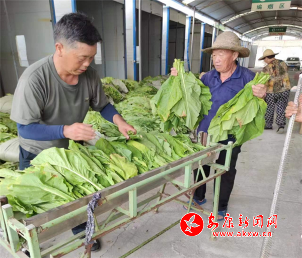 隨著臺(tái)子村千畝烤煙基地第一爐烤煙裝進(jìn)烤煙房,標(biāo)志著神河鎮(zhèn)3200畝烤煙將陸續(xù)進(jìn)入“開(kāi)烤”黃金期,在煙葉大田里,隨處可見(jiàn)煙農(nóng)們采葉、運(yùn)輸?shù)姆泵跋,煙農(nóng)將新采摘的煙葉,分揀編織,送入烤煙房,一片片綠葉在高溫的環(huán)繞下,蓄勢(shì)變?yōu)闊熮r(nóng)增收的“黃金葉”。