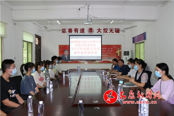 本網(wǎng)訊(通訊員 龔成麗)8月24日,陜西翱翔天越實(shí)業(yè)有限公司聯(lián)合旬陽(yáng)市慈善協(xié)會(huì)舉行了2022年貧困大學(xué)生助學(xué)金發(fā)放儀式,F(xiàn)場(chǎng)為13名品學(xué)兼優(yōu)、家庭困難的學(xué)生每人發(fā)放助學(xué)金4000元。