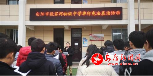 學(xué)校里,開展憲法晨讀,全體師生共同參與,同步跟讀憲法條款,讓學(xué)生通過(guò)學(xué)習(xí)憲法的基本原則和基本知識(shí),感受憲法精神,體悟憲法威嚴(yán),在校內(nèi)形成“積極宣傳憲法、尊崇憲法、維護(hù)憲法,弘揚(yáng)憲法精神,樹立憲法權(quán)威,增強(qiáng)法治觀念”的新風(fēng)尚。
