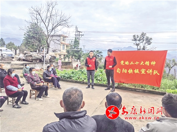 旬陽市黨的二十大精神快板宣講隊活躍山鄉(xiāng)。
