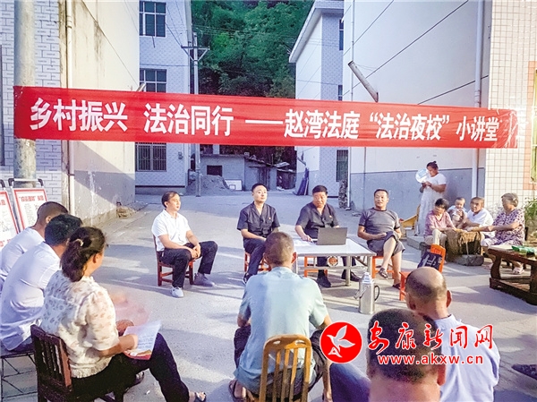 旬陽(yáng)法院趙灣法庭“法治夜校”小講堂利用農(nóng)閑時(shí)間,走進(jìn)村頭巷尾開(kāi)展普法宣傳