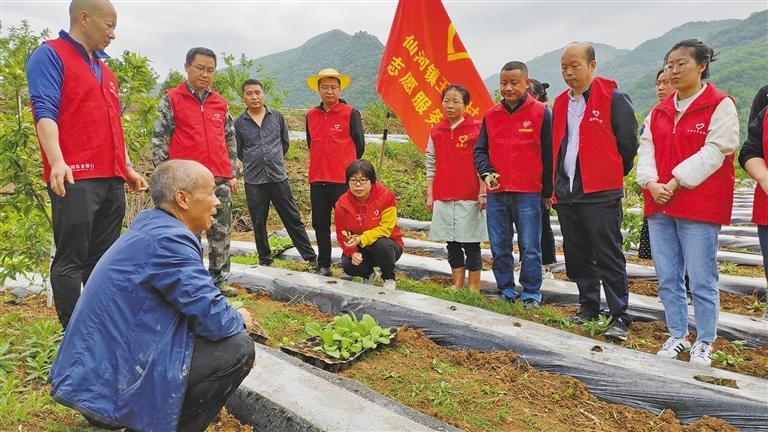 旬陽(yáng)市仙河鎮(zhèn)志愿服務(wù)隊(duì)走進(jìn)田間地頭。 旬陽(yáng)市委宣傳部供圖