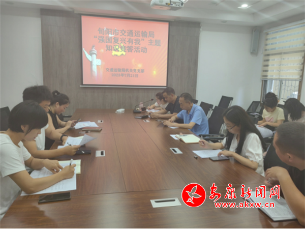 本網(wǎng)訊 為深入學(xué)習(xí)貫徹黨的二十大精神,深化“強國復(fù)興有我”群眾性主題宣傳教育活動,進(jìn)一步激發(fā)系統(tǒng)黨員群眾愛黨、愛國熱情,教育引導(dǎo)黨員群眾堅定理想信念,凝聚奮進(jìn)力量,筑牢初心使命;激發(fā)黨員群眾干事創(chuàng)業(yè)激情,牢固樹立高質(zhì)量項目建設(shè)和高品質(zhì)運輸服務(wù)“雙高”理念。近日,旬陽市交通運輸局結(jié)合主題黨日活動,突擊組織機關(guān)30余名黨員干部開展“強國復(fù)興有我”主題宣傳教育知識競答活動。