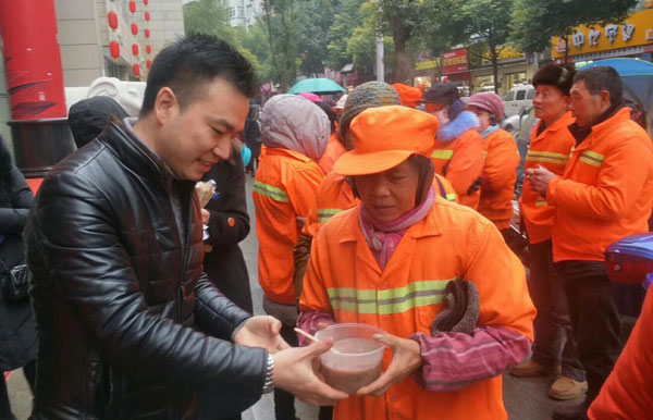 愛心企業(yè)為環(huán)衛(wèi)工免費(fèi)送粥
