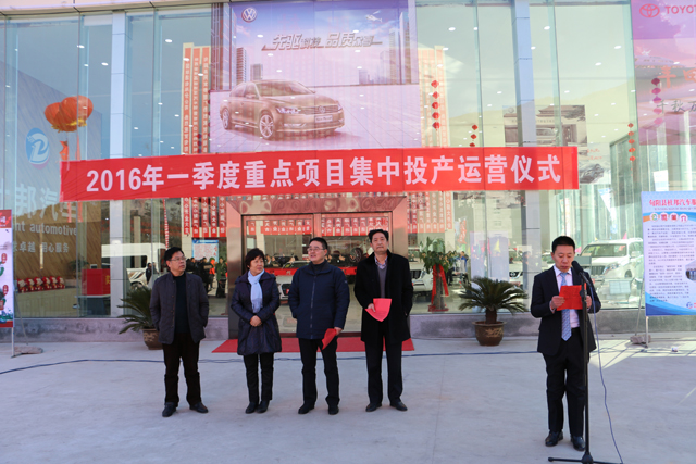 1月24日,旬陽(yáng)縣舉行2016年一季度重點(diǎn)項(xiàng)目集中投產(chǎn)運(yùn)營(yíng)儀式。這次集中投產(chǎn)運(yùn)營(yíng)的有旬陽(yáng)杜邦汽車服務(wù)中心、旬漢食品年產(chǎn)1000噸烘焙食品加工項(xiàng)目、綠爾佳豆制品加工……